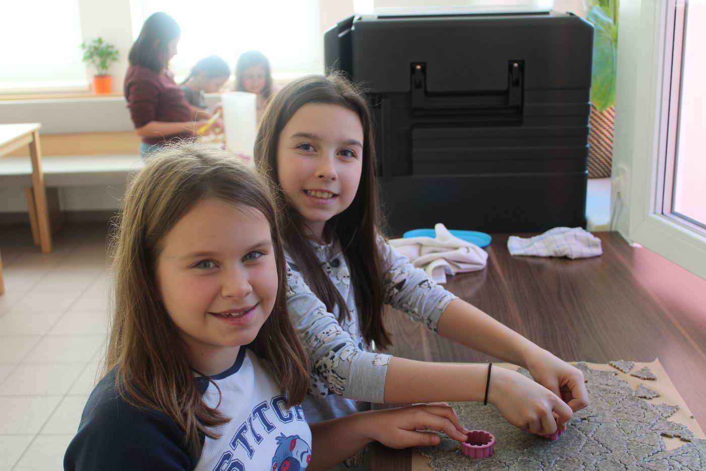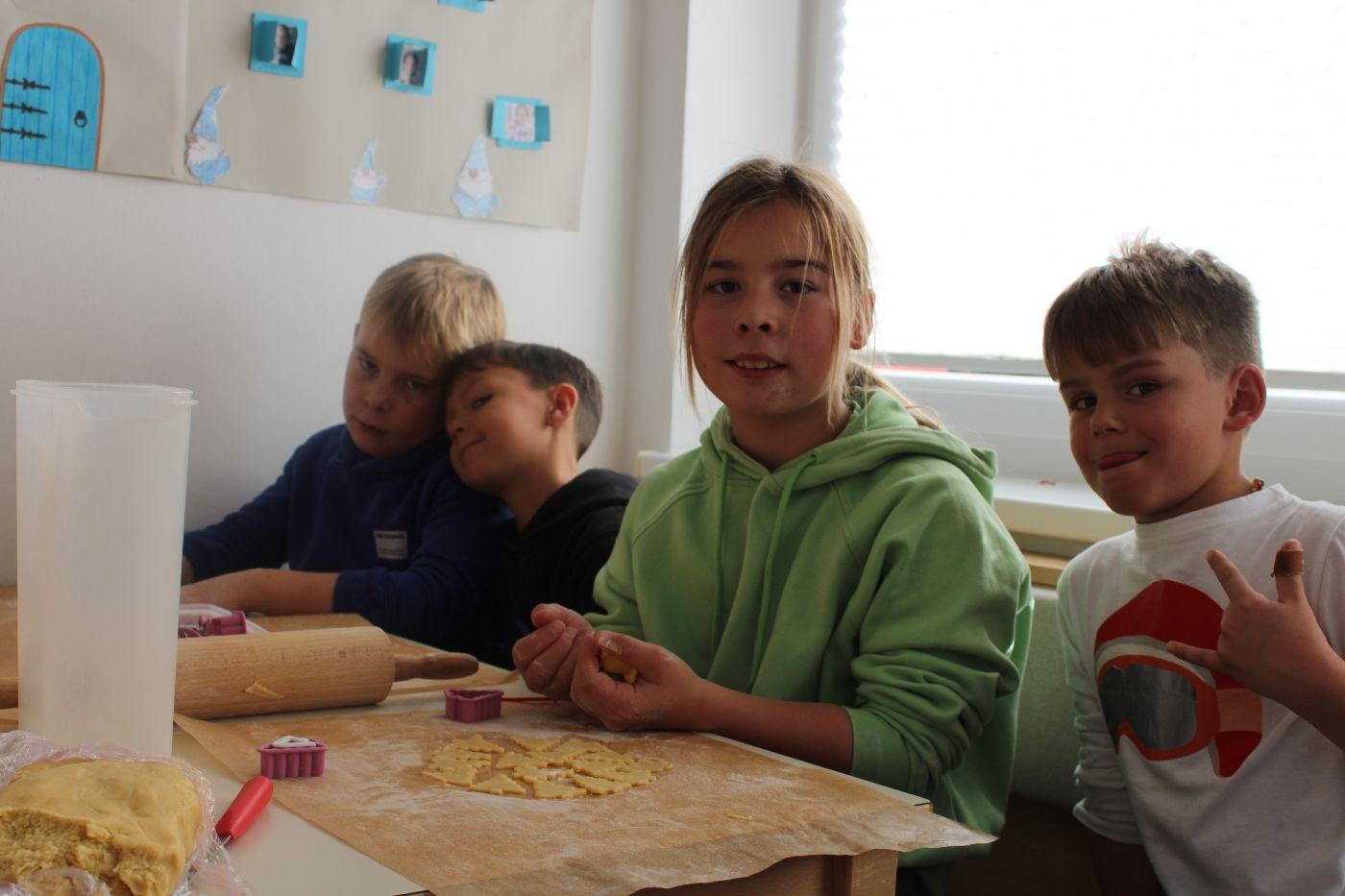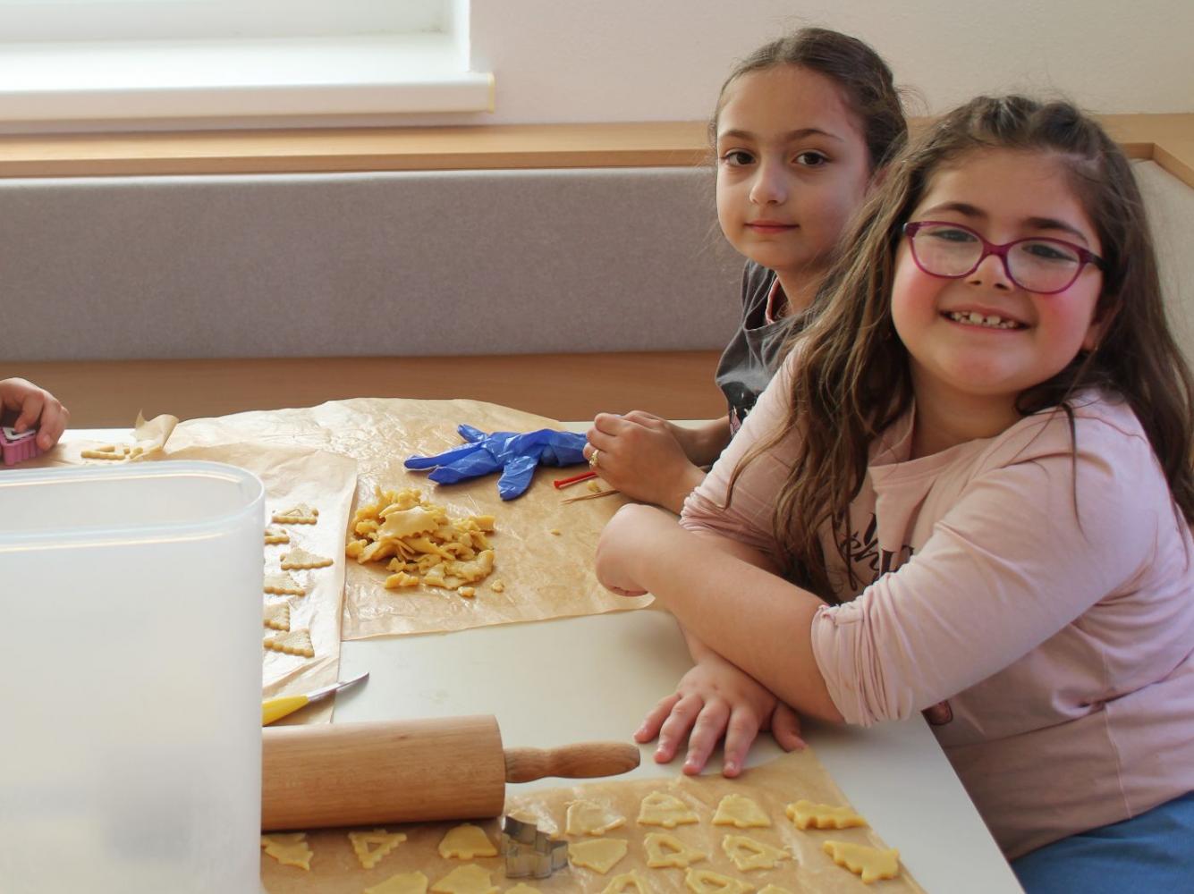 Die Küche wird die nächsten Wochen nach dem Mittagessen zu einer Plätzchen-Bäckerei! Jeden Nachmittag wird Teig ausgerollt, schön ausgestochen und ausgebacken. Zum Glück haben wir so viele kleine und große Helfer:innen!